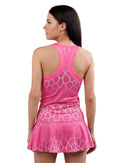 Seu design em formato borboleta facilita a mobilidade, enquanto a estampa animal print em tons de rosa com linhas geométricas confere um visual marcante e cheio de personalidade. O logo da marca, estampado em silicone branco no centro do peito, complementa o estilo com elegância.