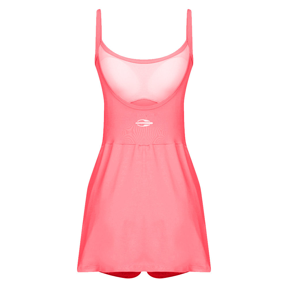 Fabricado em 92% poliamida e 8% elastano, com forro interno em 87% poliéster e 13% elastano, o vestido garante ajuste confortável ao corpo, secagem rápida e ótimo caimento, unindo tecnologia e elegância esportiva.